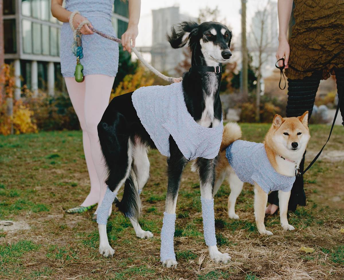 With the knowledge that dogs and cats deserve the latest (resurfaced) trends as much as their people, Jenny Cheng and Esther Gauntlett create similar styles for pets. What initially started as a fun pet casting for their fall/winter 2018 presentation soon became an in-demand extension of their line. The Brooklyn-based duo, along with their friends and family have ushered in a diverse group of canine and feline fit models, ensuring their designs remain body-affirming for several species.