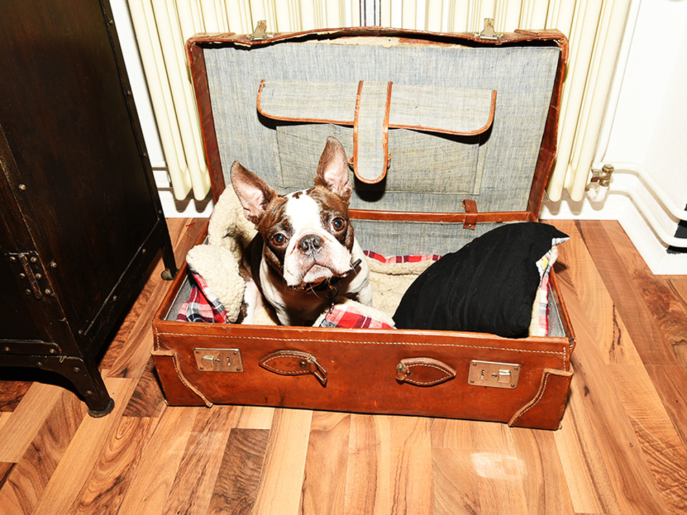 Bear is eight years old. He’s a mix of various breeds — Chihuahua, Spitz, and Schipperke being the prominent ones. When he was a puppy, he looked just like a bear cub. We met in Berlin on a cold November day in 2012 when he was eight weeks old and fit perfectly inside the palm of my hand. He has changed how I live as he’s pretty much always with me. He has separation anxiety and hates staying home alone, plus he’s very adventurous and inquisitive so he very much insists on coming along all the time. Luckily, most places such as restaurants, cafés, bars, and beer gardens welcome dogs in Berlin, and they are also allowed on public transportation. Many shopping centers, pharmacies, and bakeries are open to dogs too, and I have even discovered a supermarket that allows small to medium-sized dogs inside — Bear’s face when first seeing (and smelling) the cheese section was worth the trip alone!