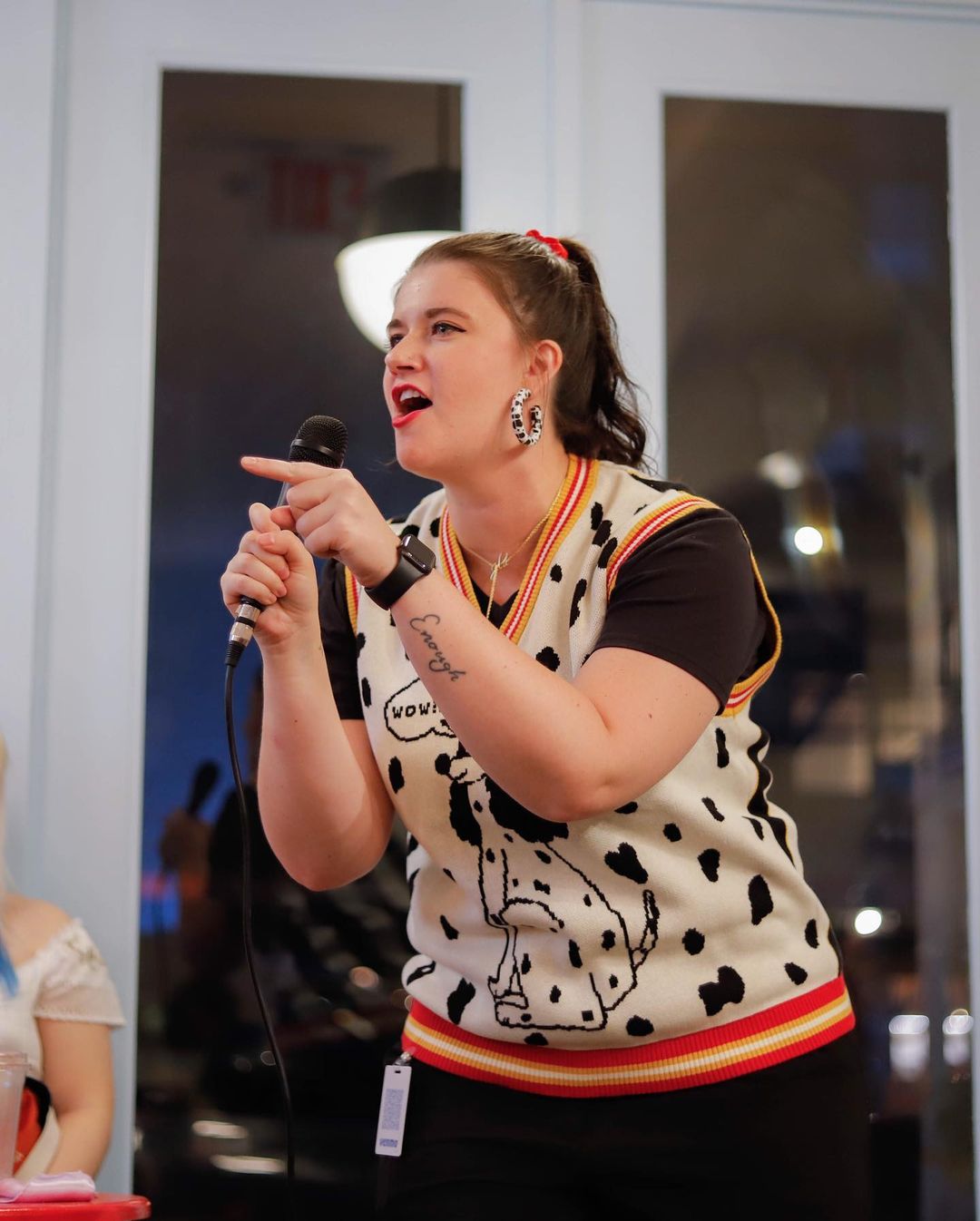 So, Dudley made the space she wished to see — and perform — in the world: a bi-monthly comedy show at the East Village dog cafe, Boris & Hortonopens in new tab. While Dudley and co-founder Nick Polanco would classify the atmosphere of their shows as “chaotic joy,” you could also call them “inclusive.” Every show features a mix of up-and-coming and established women, LGBTQIA+, and BIPOC stand-up, character, storytelling, and musical comedy performers.