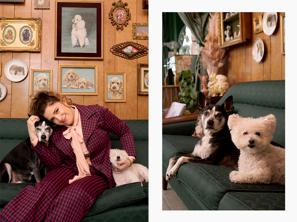 We usually go for a long w-a-l-k in the morning. I can’t say the word because I’m sitting right next to them [laughs]. I’m an early riser so we’ll go at 7:30 in the morning and again after work. At home, Chupie is obsessed with tug of war. Meemu cannot handle tug of war because he’s so delicate. He couldn’t possibly play with Chupie. So, usually, I’ll have one hand playing tug of war and one hand playing catch. And we feed them Just Food for Dogs, which is really high-quality food, and my dogs love it.