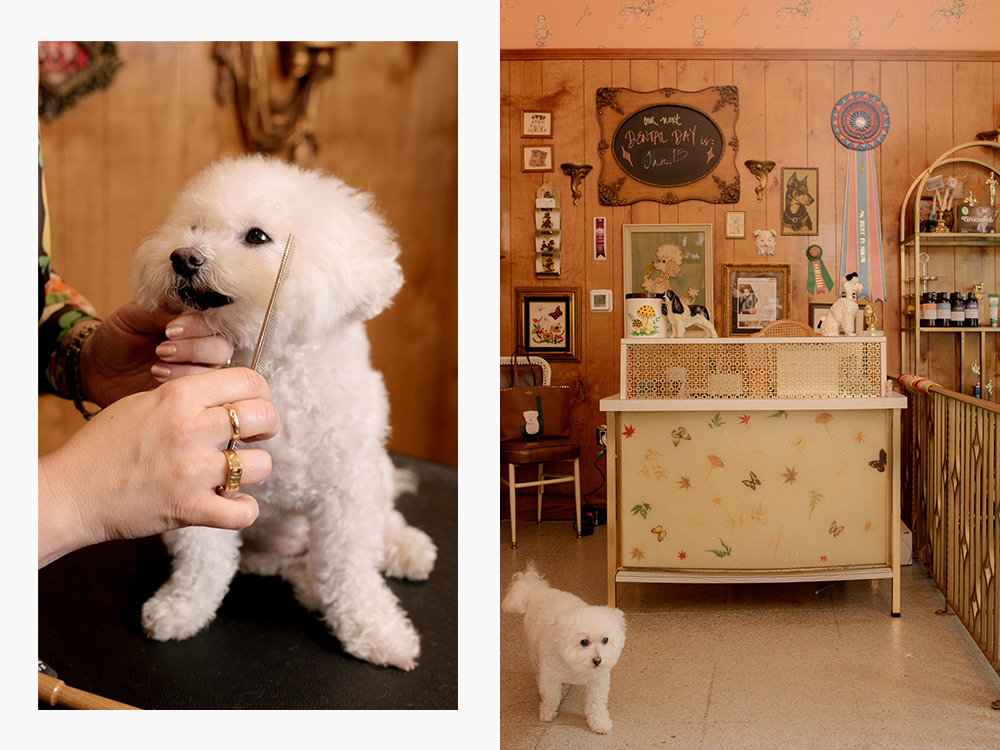 The biggest thing I tell people when they come in is to have “no-big-deal” energy for the drop off and pick up. If people treat their dogs like human children, they can create more anxiety. And then, if you do bring a reference photo, make sure the photo is of the same breed and the same coat type as your dog. Puppies have completely different coats. Sometimes, clients bring me a photo of their own dog as a puppy...the coat tapers at the end so it’s not a blunt cut. You can’t recreate that on an adult dog with a haircut, but you can be inspired by it. Or, they will bring in a show dog or something completely different. “Can you make my bald Maltipoo with no hair look like this show dog who won Westminster?”