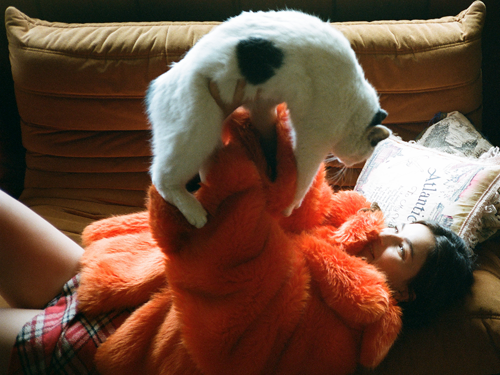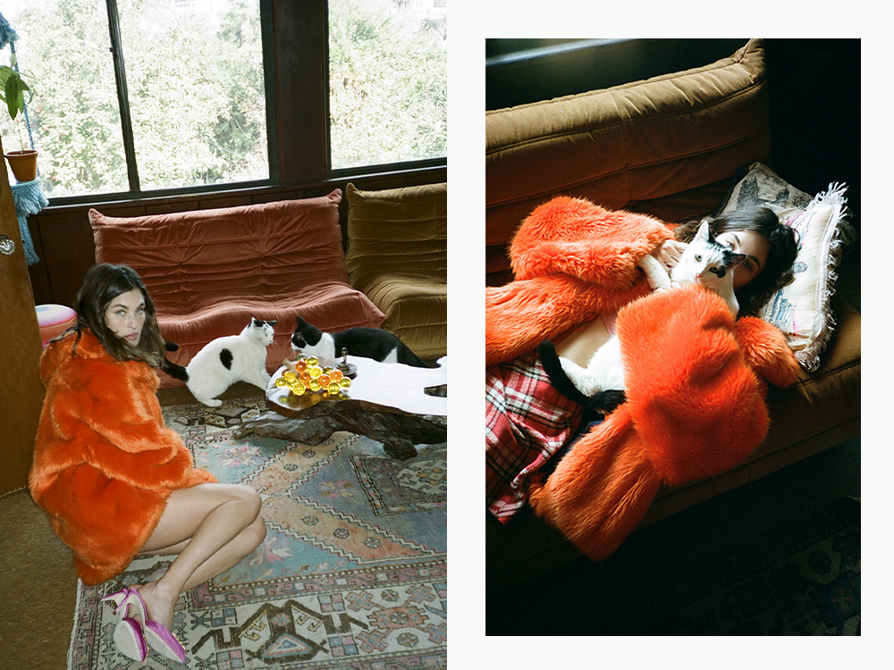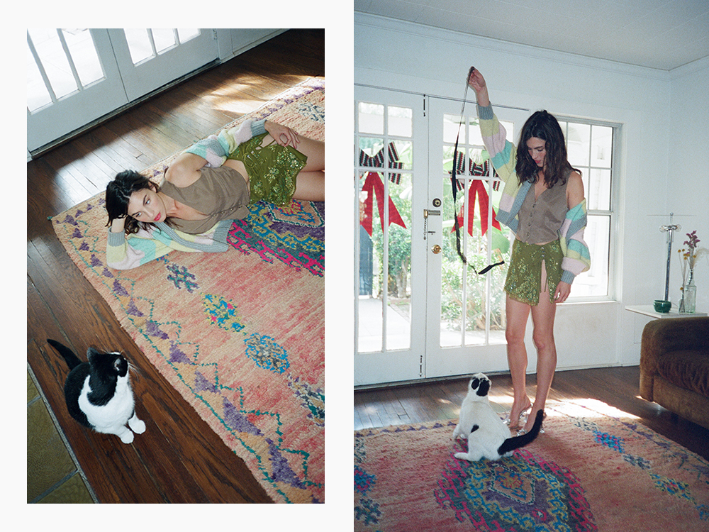 But back at her home in Los Angeles, Qualley’s family is decidedly feline: Myrtle, Wizard, and Jesus are all rescues she fostered as kittens but couldn’t bring herself to let go. Animals, it seems, always surround Qualley. “I’m an animal person,” she admits. “Although, I definitely have a soft spot for cats.”