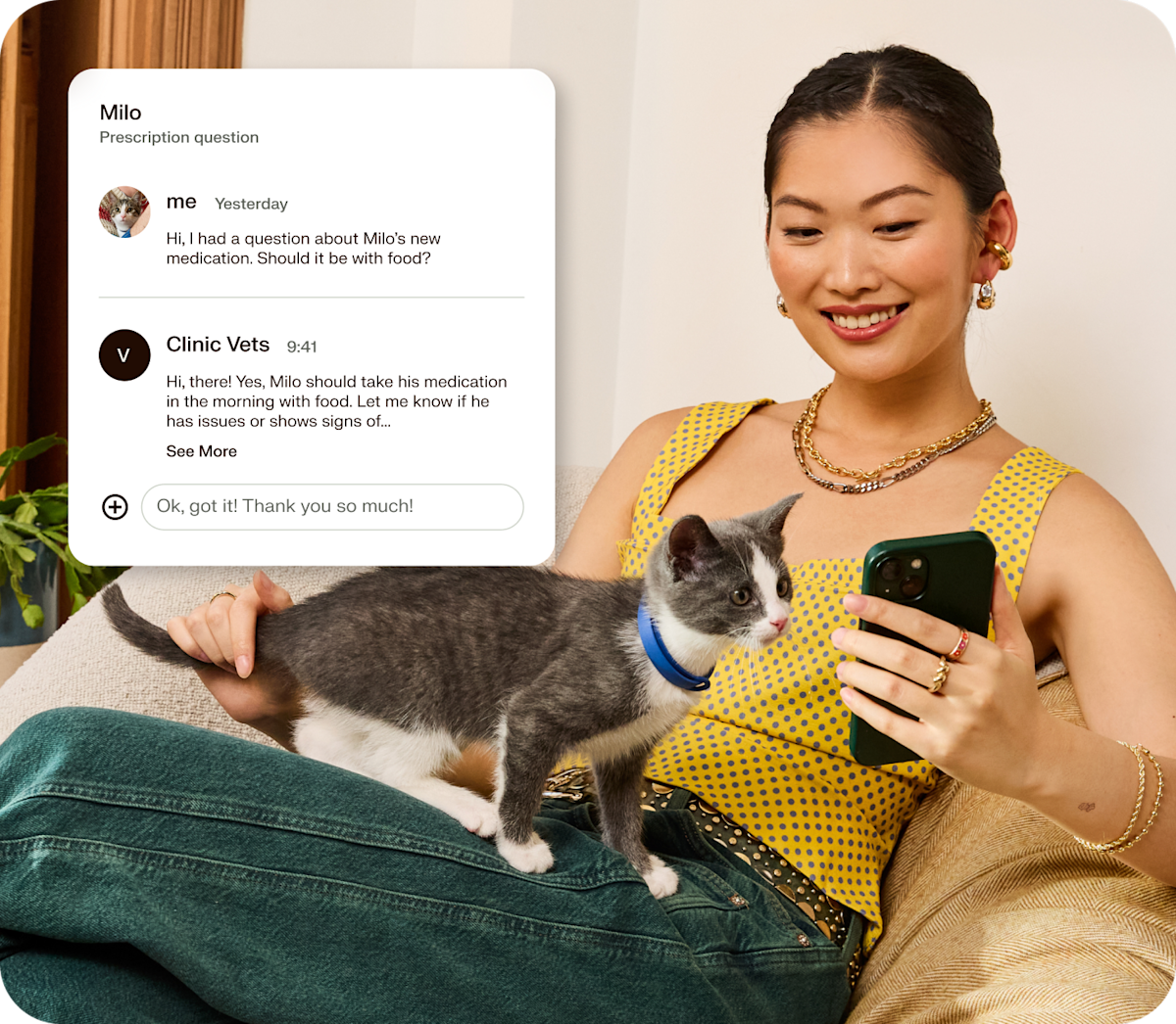 Whether it’s a question about billing, booking or your pet’s new probiotic – just send a message right in the app.