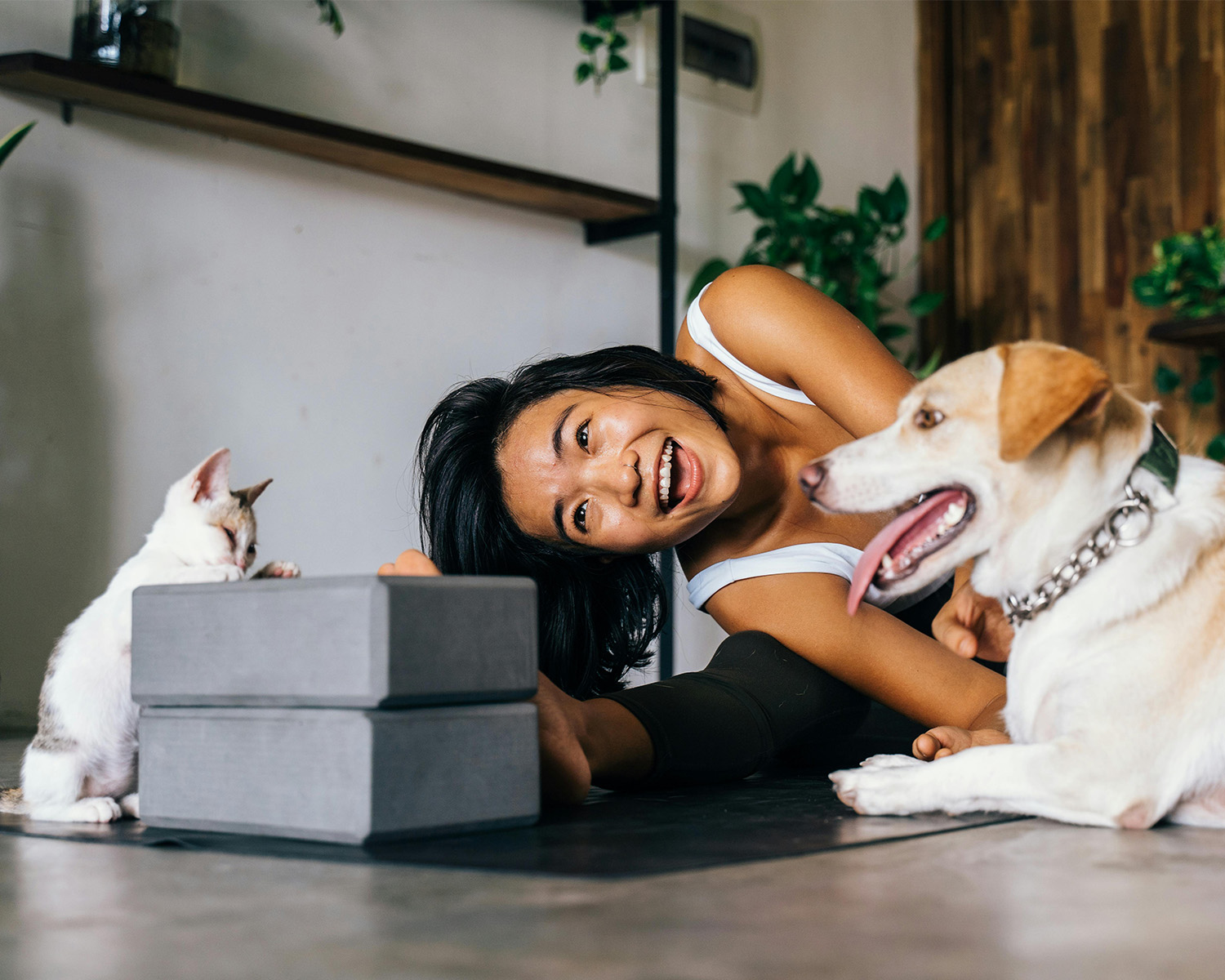 The start of the year – for a lot of us, is time to get into exercise. But whether you’re finally taking up yoga or getting around to using those dumbbells, home workouts can be tricky when you have pets.