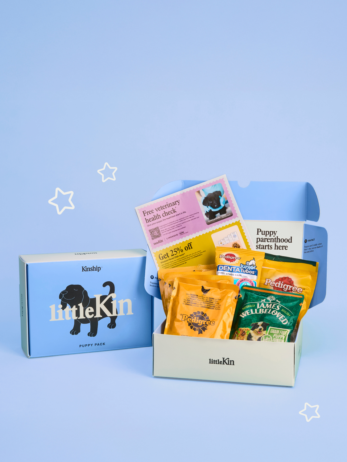 *Free with promo code. (For eligible pet parents only.) littleKin Packs are open to new Kinship subscribers who reside in the United Kingdom and have a puppy or kitten under 12 months. One Pack per household only. See full terms hereopens in new tab.