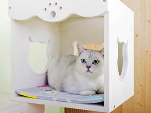 Mid-century modern coffee table or litter box? Industrial bookcase or cat tower? If you can’t tell, that’s kind of the point